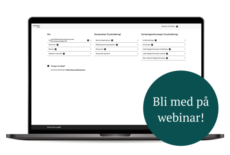 Bli med på våre webinarer og se hvordan tjenestene fungerer i praksis. Få tips og veiledning som gjør arbeidet lettere, enten det er å oppdatere informasjon på Sortere eller kommunisere om avfall til folk og bedrifter.